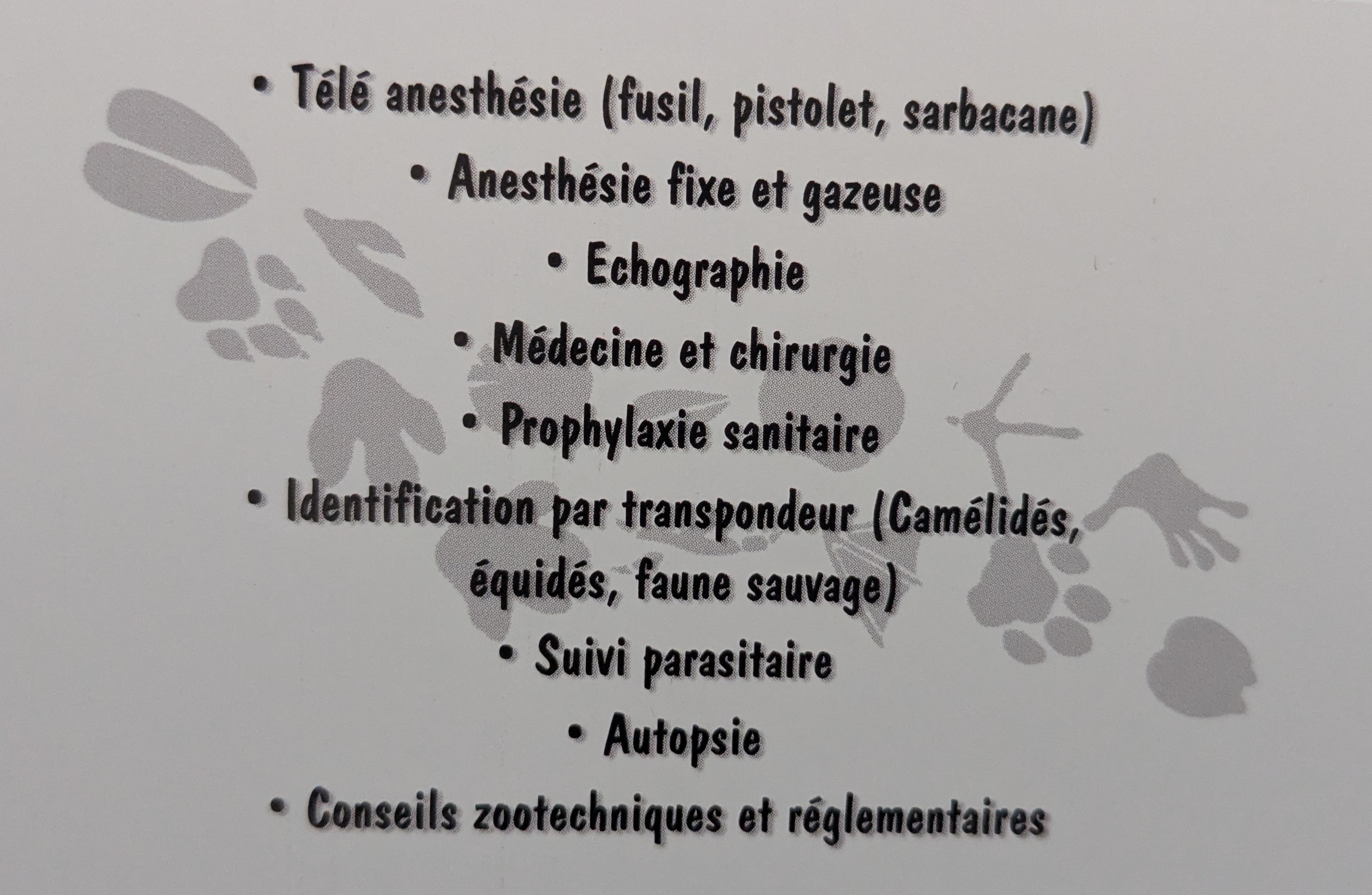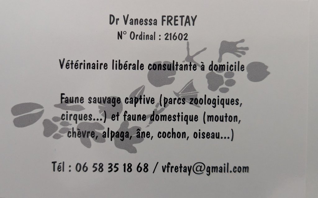 Vanessa Fretay, vétérinaire à domicile, axée sur les animaux de cirque, de zoos, exotiques mais aussi domestiques : ovins, caprins, canins, sur l'ensemble du département (basée sur Theix).