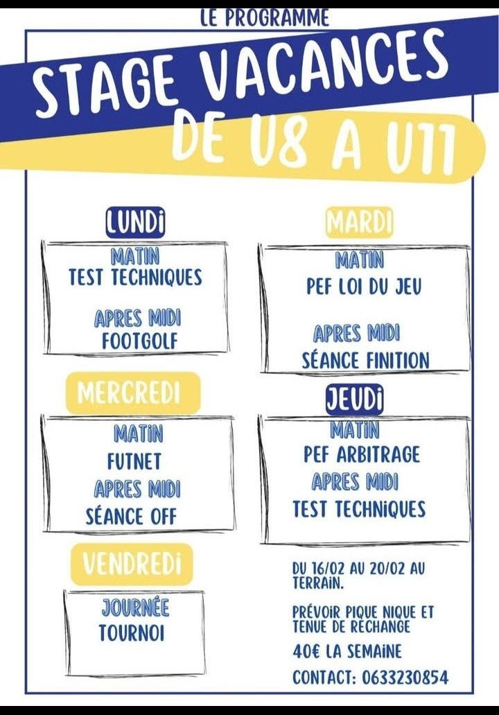 STAGE DE FOOT - VACANCES DE FEVRIER