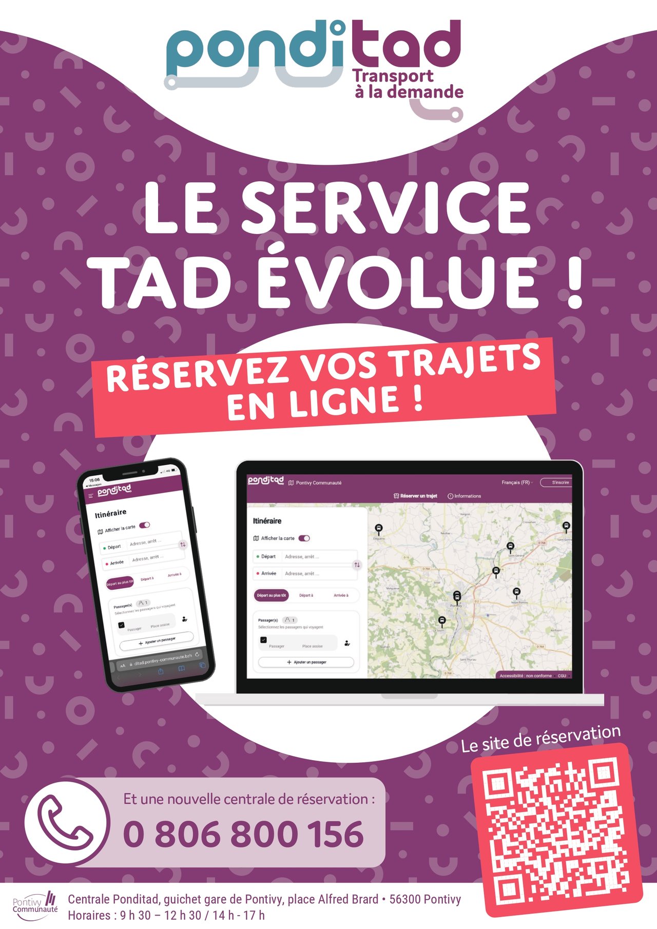 * En plus du téléphone, il sera possible de réserver ses trajets via le site internet de réservation Ponditad. https://ponditad.pontivy-communaute.bzh/login