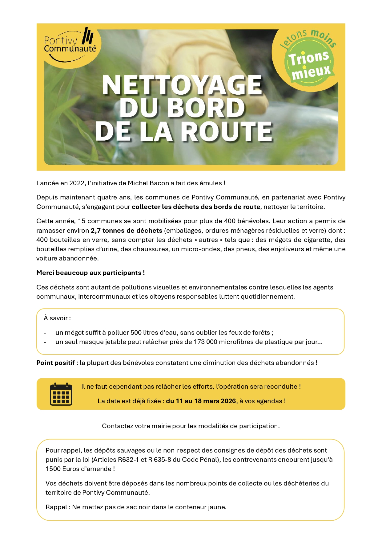 SEMAINE "0 DÉCHET SUR LE BORD DES ROUTES" - ON RAMASSE AVEC LE CME!
