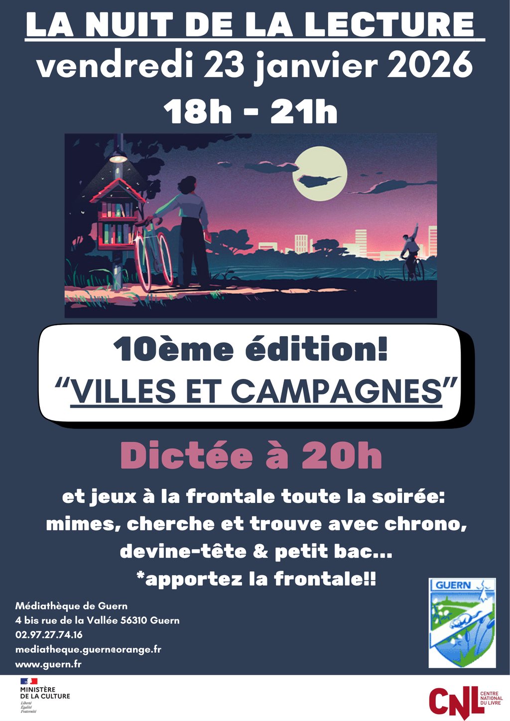 On commence de préparer sa frontale et on vient faire un petit tour à la Médiathèque De Guern pour la 10ème édition de LA NUIT DE LA LECTURE!
