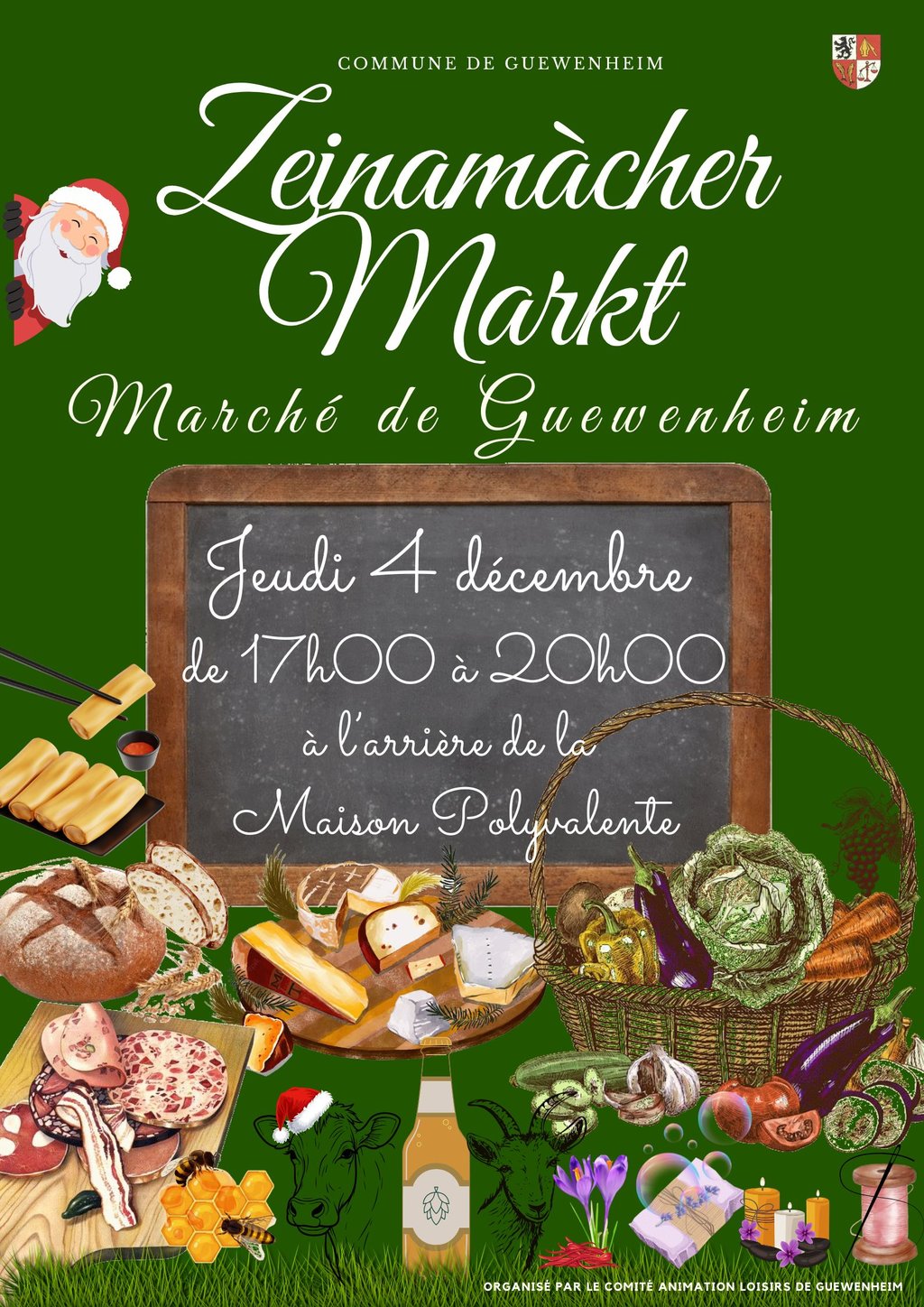 La dernière édition de l’année du Zeinamachermarkt se profile : rendez-vous demain, jeudi 4 décembre de 17h à 20h pour l’édition de décembre… qui marque le 3e anniversaire du marché de Guewenheim !