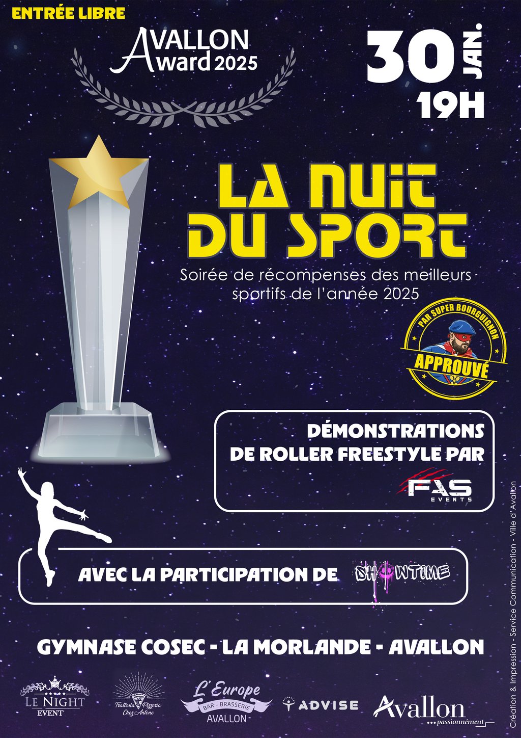 Traditionnel rendez-vous du mois de janvier, la Nuit du Sport, Avallon Award, est de retour le vendredi 30 janvier à 19h au gymnase Cosec de la Morlande.