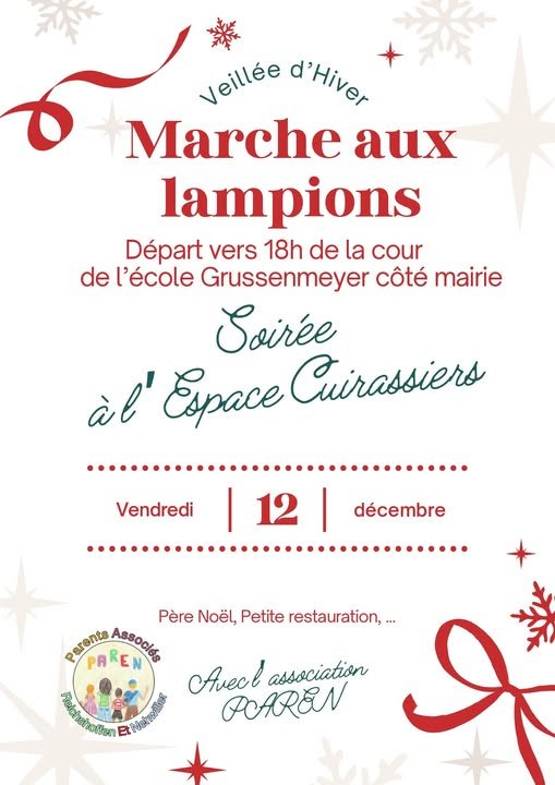 Veillée de Noël de l’école F. Grussenmeyer par l’Association PAREN, départ à 18h à l'école F. Grussenmeyer.