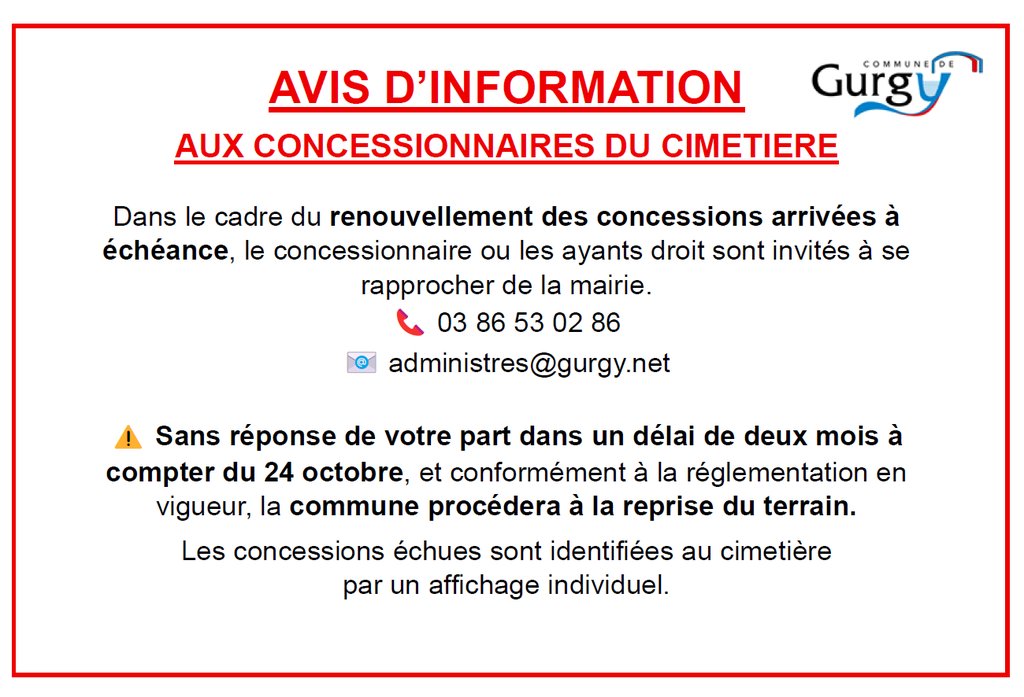 AVIS D'INFORMATION - CONCESSION ÉCHUE