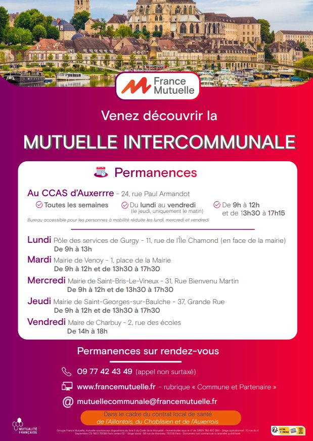 Permanence : lundi de 9h à 13h au pôle services de Gurgy