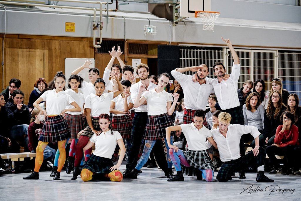 Le public a pris place dans les gradins installés en vis-à-vis pour délimiter l’espace d’une scène improvisée au centre d’un gymnase. Il n’y a ni décor, ni rideau, rien du décorum habituel des salles de théâtre. Un coup de sifflet strident retentit et le show commence. Quatorze danseurs survoltés, un peu rebelles, déboulent de tous les côtés, kilts sur collants déchirés pour les filles, pantalons en tartan pour les garçons.
