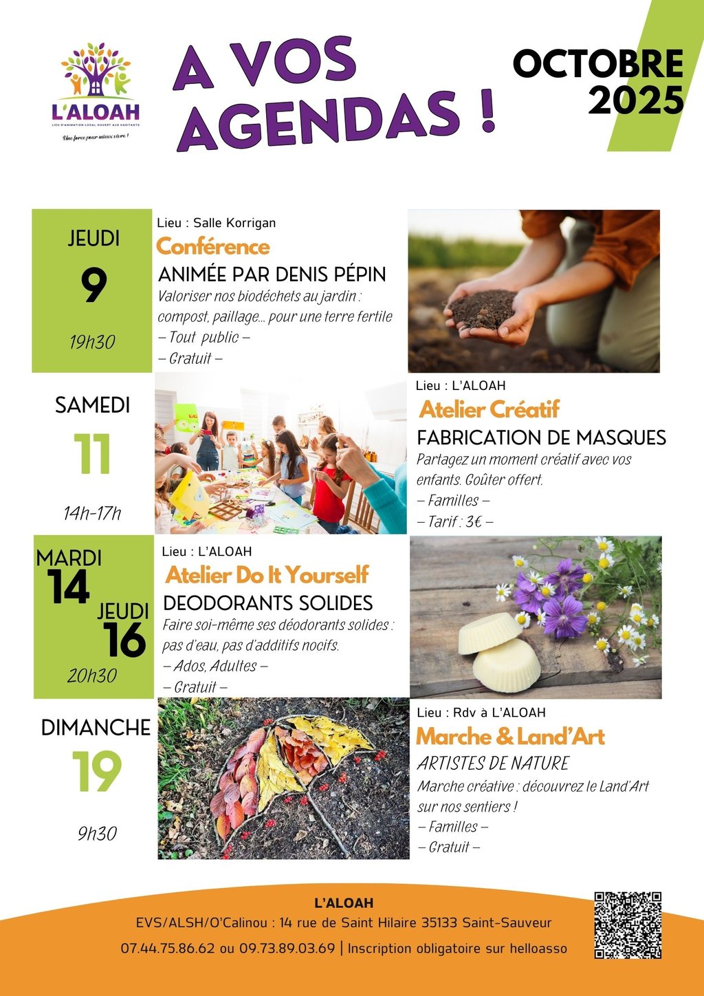 L'ALOAH vous réserve pour le mois d'octobre différentes activités