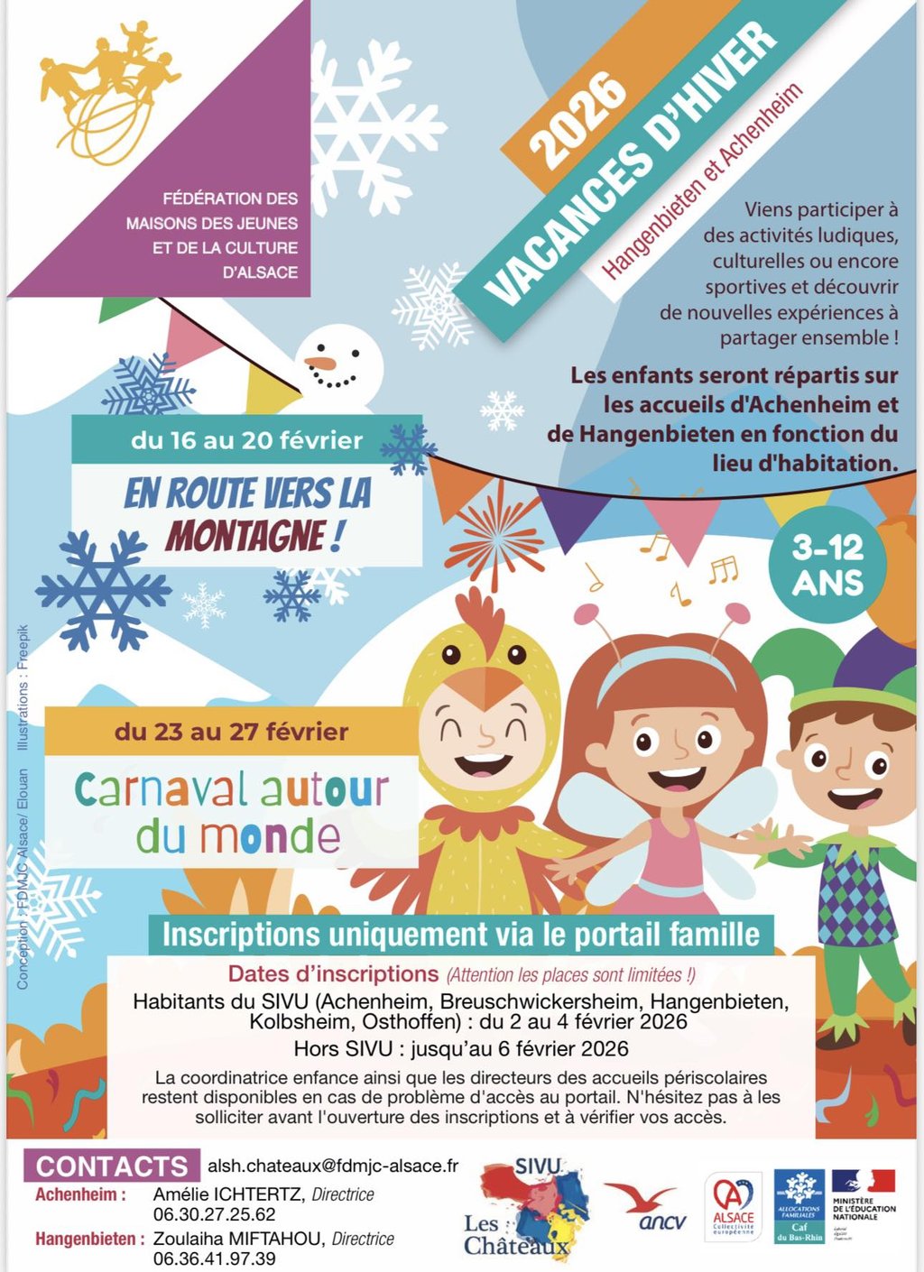 INSCRIPTIONS PÉRISCOLAIRE - VACANCES D'HIVER 2026