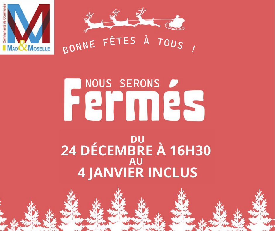 🎄 FERMETURE ANNUELLE DE LA COMMUNAUTÉ DE COMMUNES MAD & MOSELLE 🎄