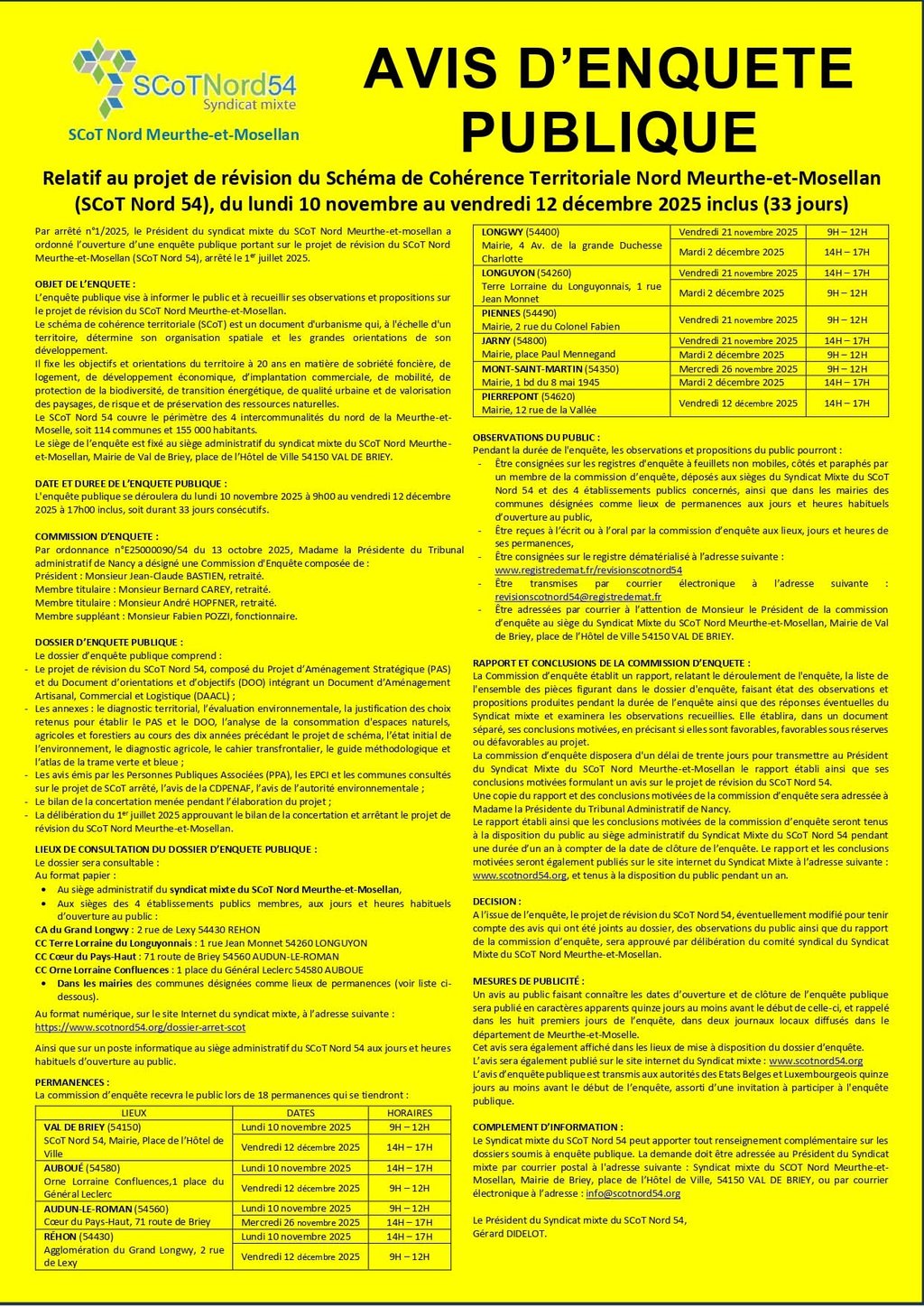 AVIS D'ENQUETE PUBLIQUE - SCOT NORD 54