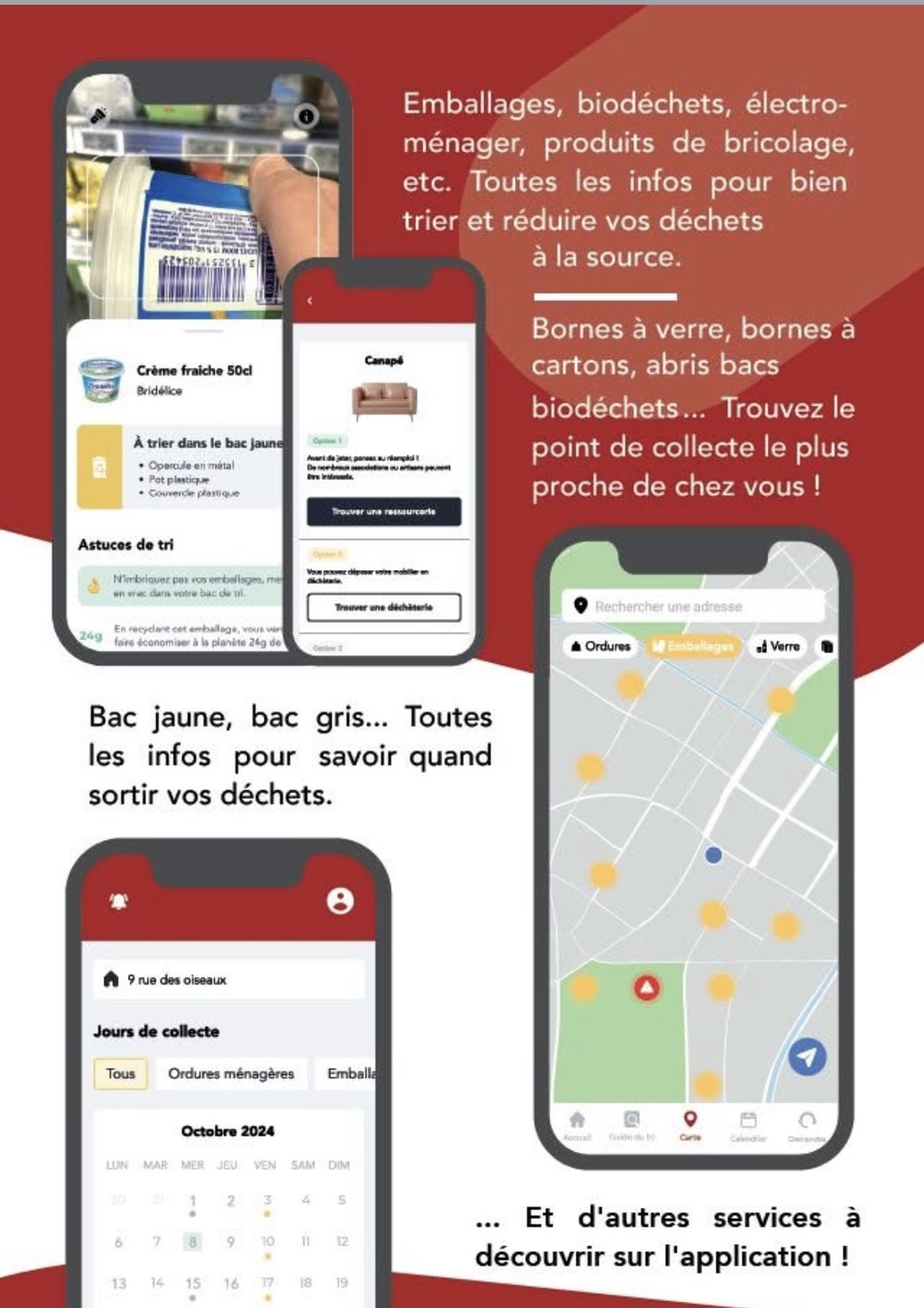 - Localiser les points de collecte les plus proches (bornes à verre, bornes à cartons, bornes pour les emballages recyclables, abris-bacs pour les déchets alimentaires,) grâce à la géolocalisation ;