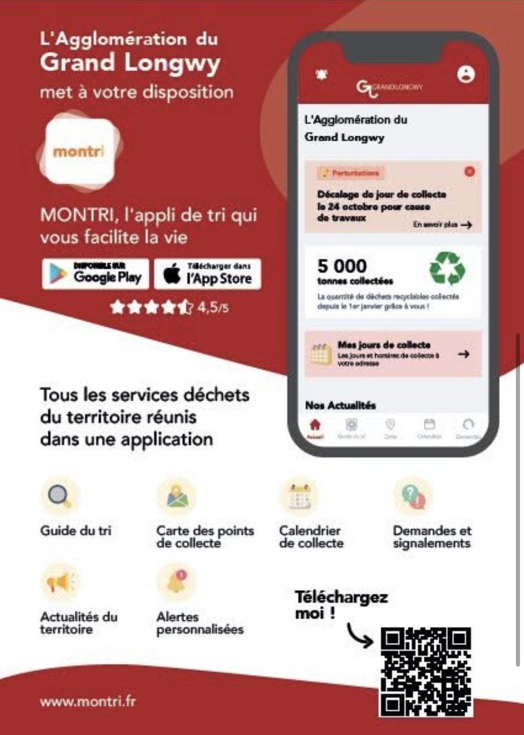 Découvrez l'application MONTRI : une solution web et mobile conçue pour faciliter la gestion quotidienne des déchets ! Lancé par l'Agglomération du Grand Longwy, cet outil intuitif centralise l'ensemble des données relatives aux collectes, aux services de la déchèterie intercommunale, etc.