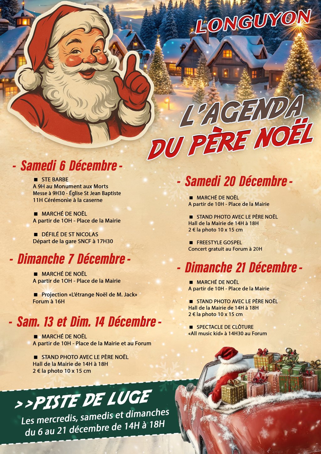 🛷 PISTE DE LUGE ouverte du 6 au 21 décembre les mercredi (14h à 18h), samedi et dimanche (durant le marché de Noël)