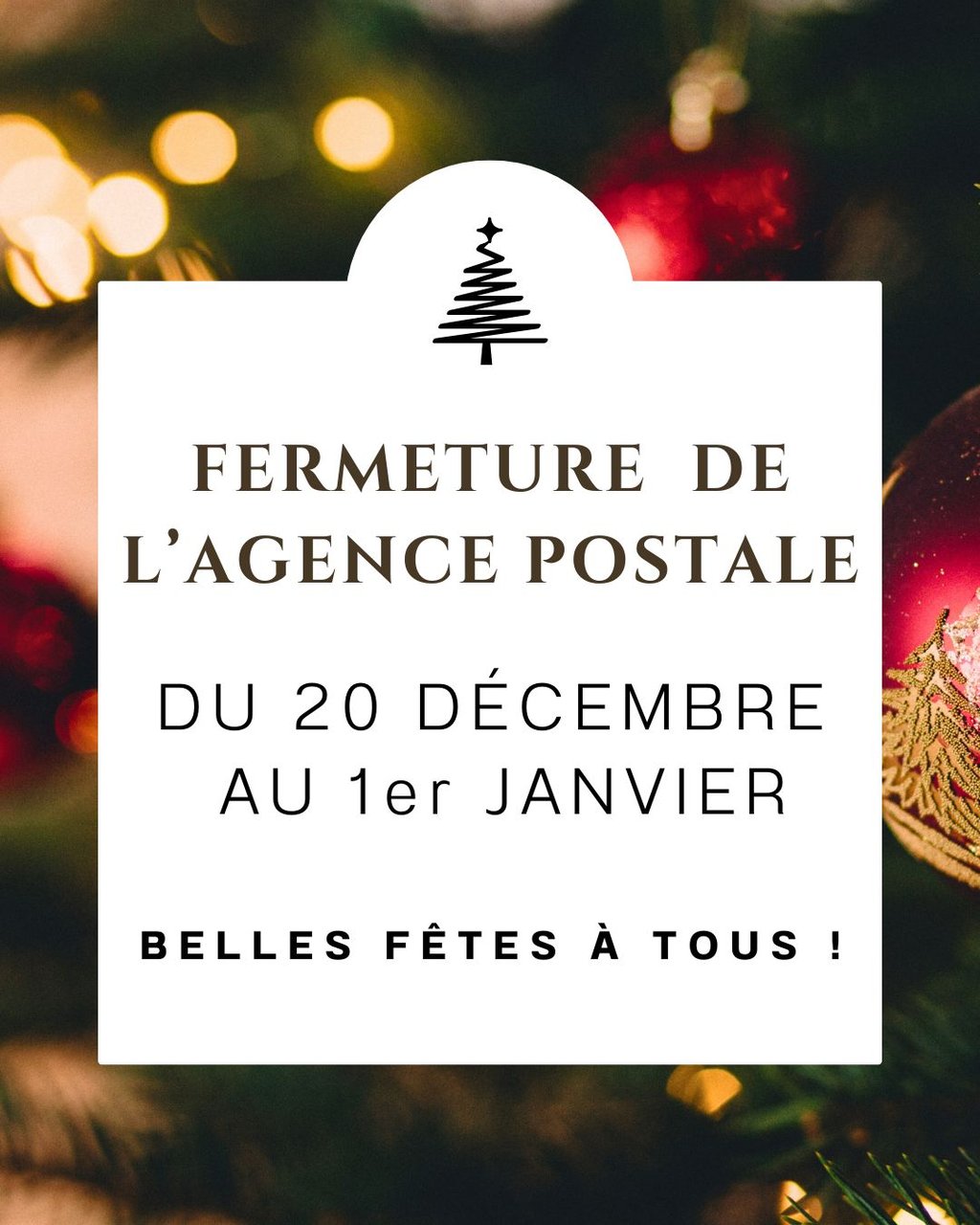📮 Réouverture prévue le vendredi 2 janvier aux horaires habituels.