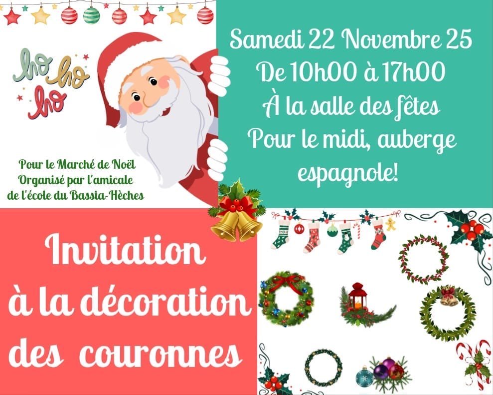 MARCHÉ DE NOËL DU 29/11/2025 DE L'ÉCOLE DU BASSIA, SUITE : INVITATION DÉCORATION COURONNES, SAMEDI 22 NOVEMBRE 2025