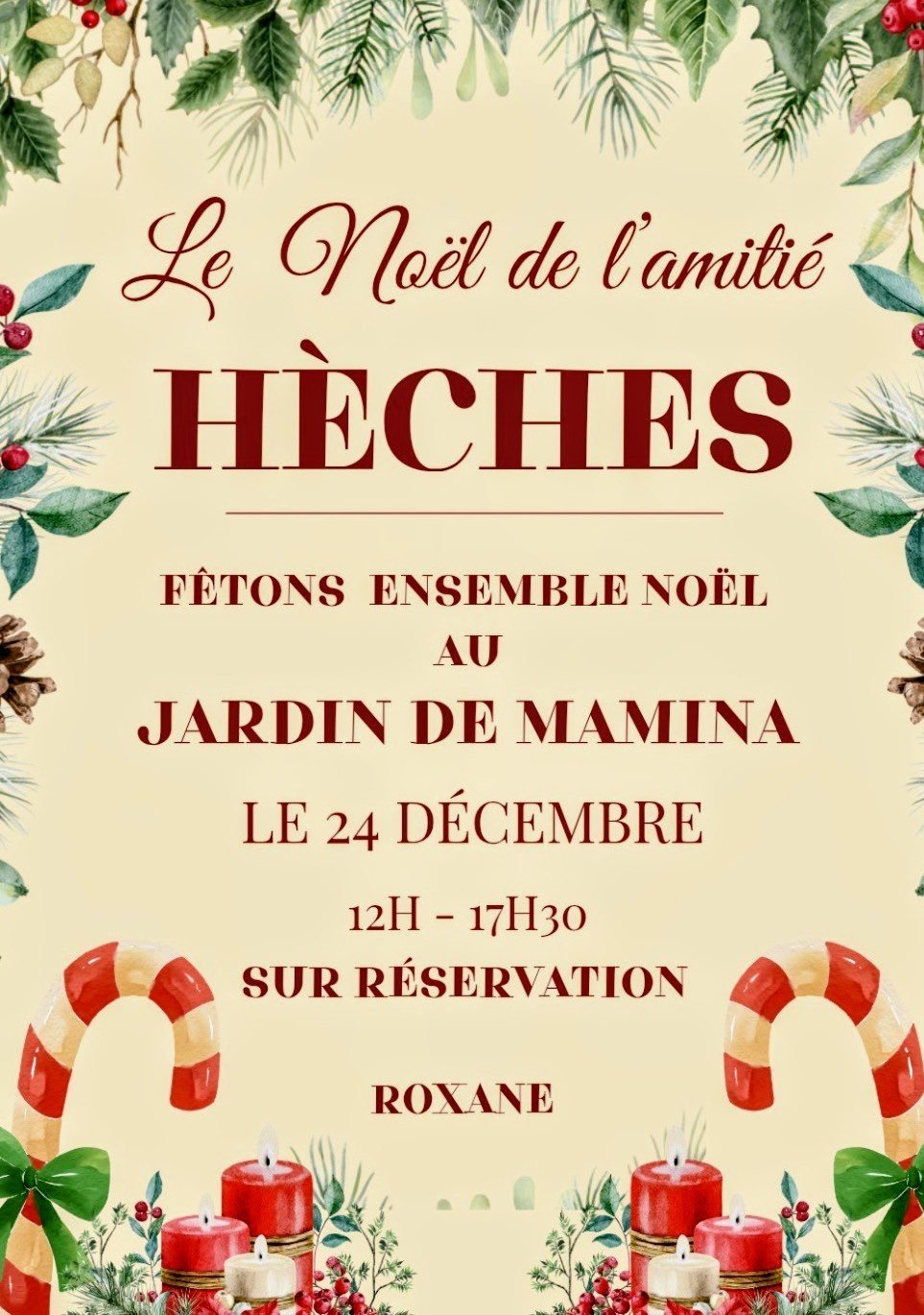Le 24 décembre 2025, de 12:00 jusqu'à 17:30 au "Jardin de MamiNa", Roxane vous propose de fêter le Noël de l'Amitié.