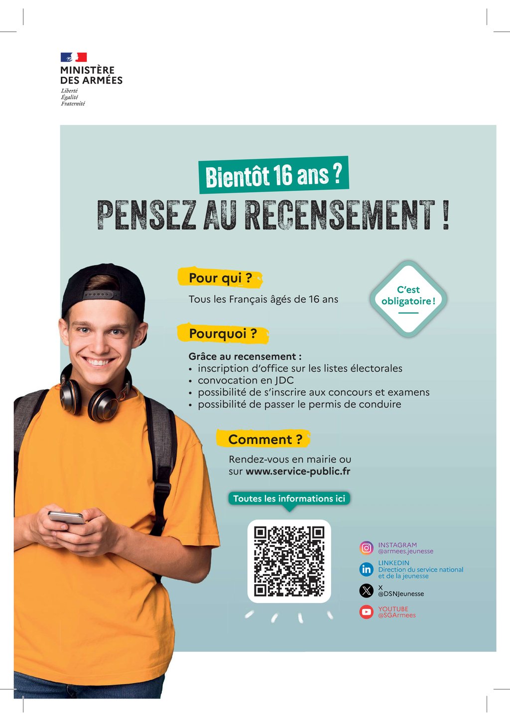 BIENTÔT 16 ANS ? PENSEZ AU RECENSEMENT !