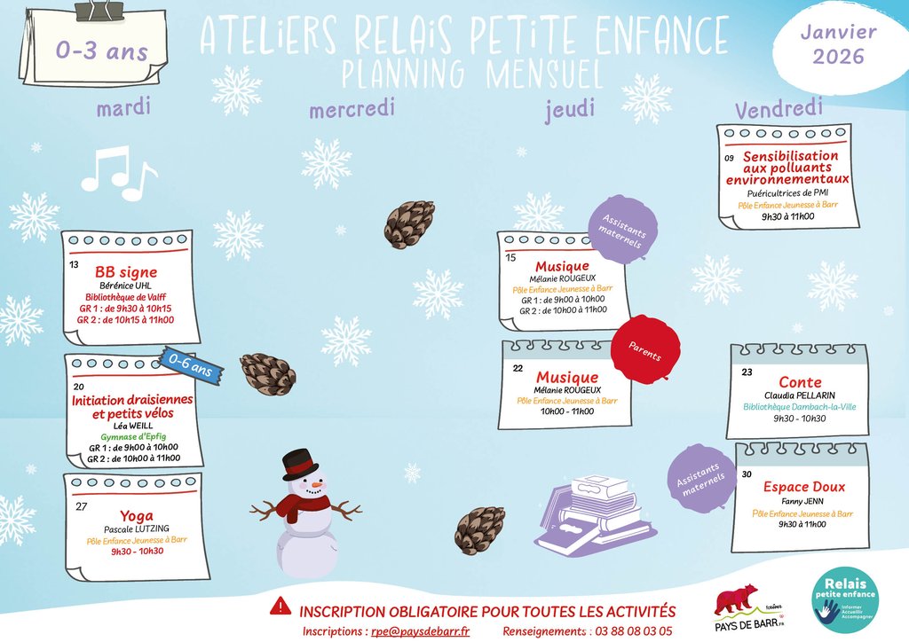 INSCRIPTION OBLIGATOIRE pour toutes les activités : rpe@paysdebarr.fr
