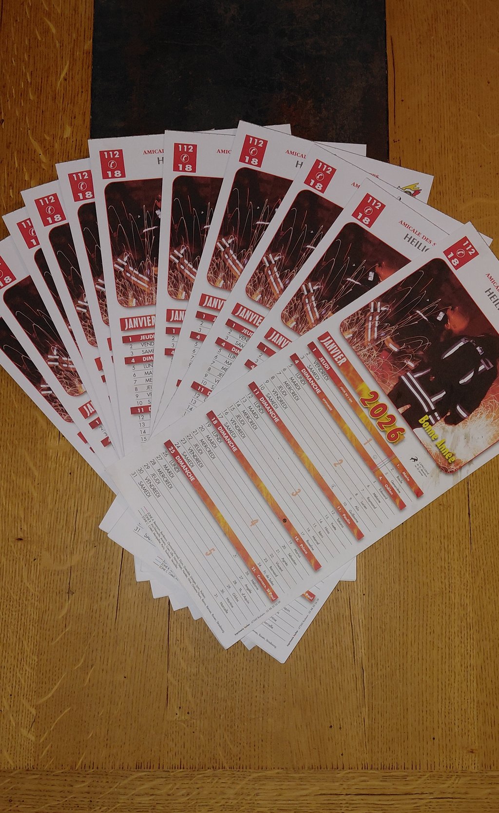La distribution des calendriers des sapeurs-pompiers de Heiligenstein a commencé. Les pompiers se rendent dans les foyers de la commune pour présenter le calendrier 2026.
