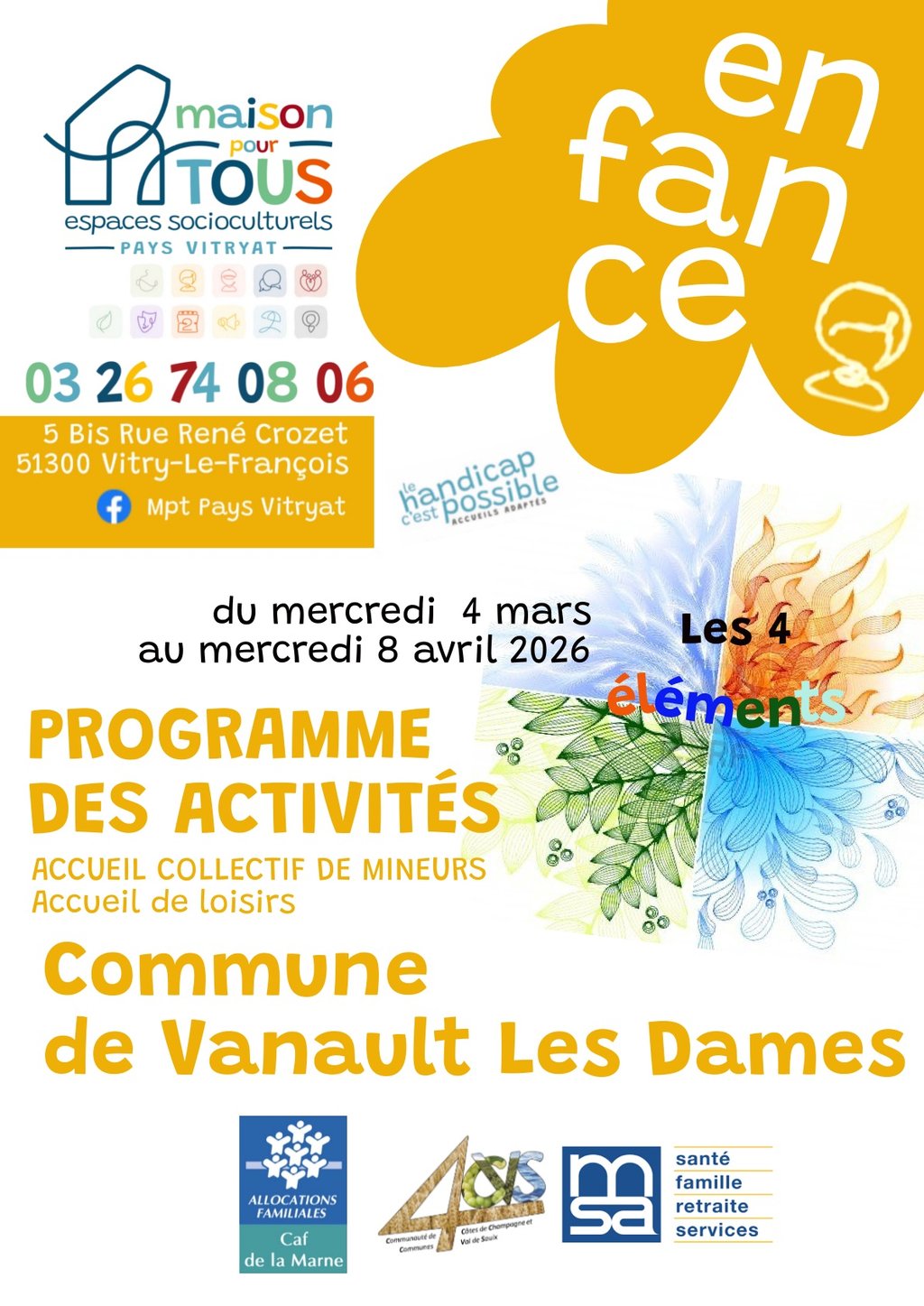 PROGRAMMES D’ACTIVITÉS DU MERCREDI 4 MARS AU MERCREDI 8 AVRIL 2026, PROPOSÉS PAR LA MAISON POUR TOUS DU PAYS VITRYAT