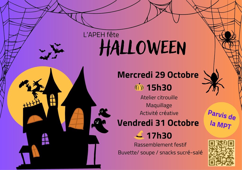 L'Association des Parents d'Elèves d'Herbeys, (APEH) prépare Halloween en deux temps festifs sur le parvis de la MPT avec des activités pour petits et grands :