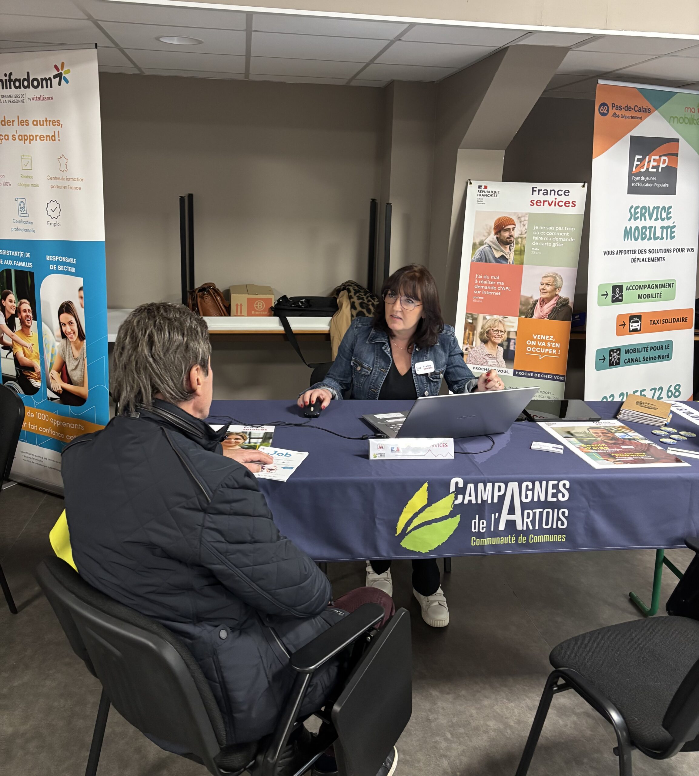 Le 25 novembre, la Communauté de communes des Campagnes de l’Artois accueillait la 2ème édition du Job Dating organisée par la Maison de l’Emploi et des Métiers (MEM).12 entreprises locales en recrutement, l’association Egée, la cellule alternance de la MEM, ainsi que France Services des Campagnes de l’Artois étaient présents pour accompagner les demandeurs d’emploi dans leurs démarches.66 visiteurs se sont présentés dans le cadre de leur recherche d’emploi et ont pu rencontrer directement les recruteurs pour découvrir les opportunités professionnelles du territoire.Cette 2ème édition a été très bien accueillie, tant par les demandeurs d’emploi que par les entreprises, ravies d’échanger avec des candidats motivés.Du côté de France Services, notre conseillère a accompagné 16 personnes sur son stand pour les guider dans leurs démarches administratives (conception de CV, compte formation, permis à 1 €, France Travail…).Un grand merci aux entreprises participantes, à la Maison de l’Emploi et des Métiers, et à tous les visiteurs pour leur mobilisation.