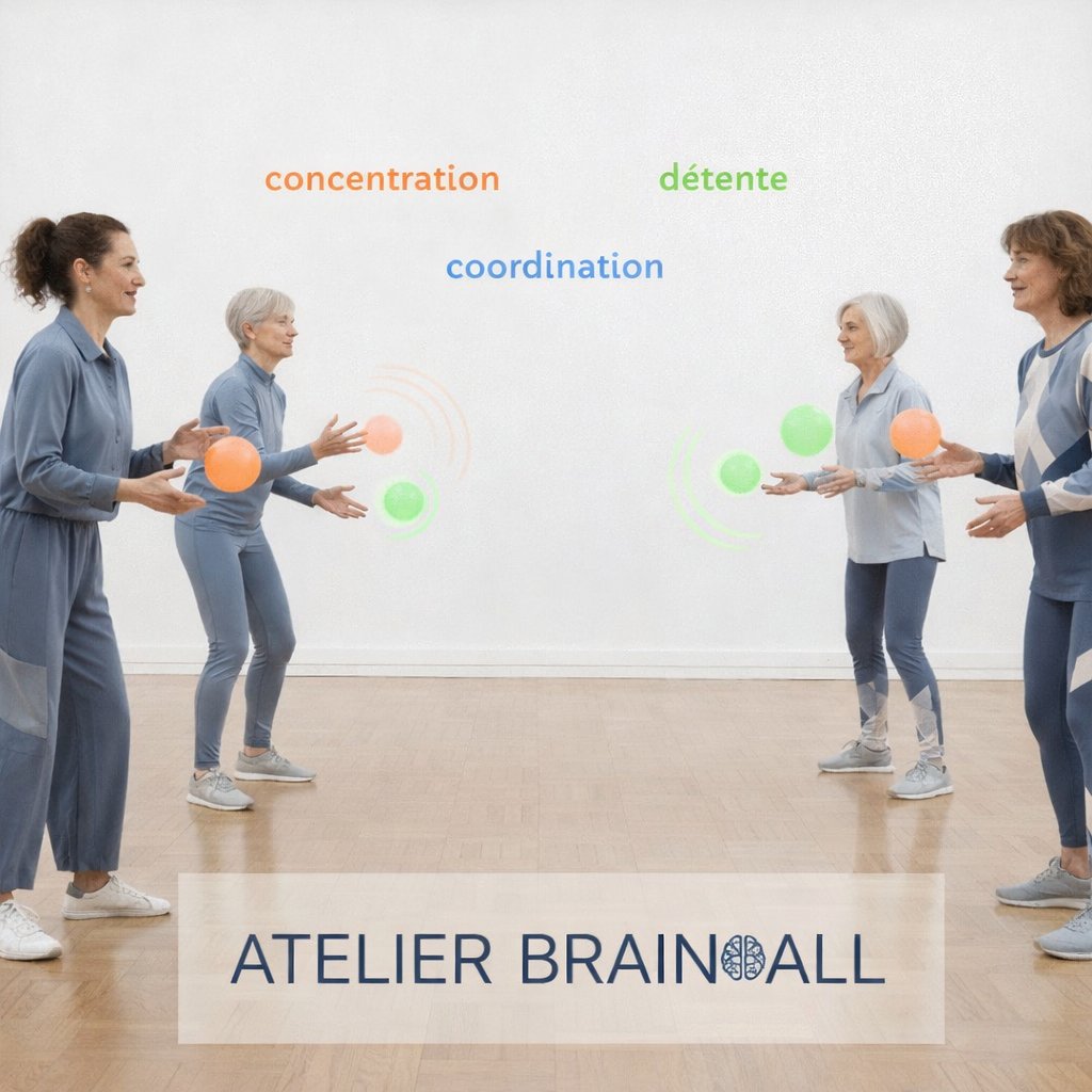 Découvrez le Brain Ball, une approche corporelle et cognitive accessible à toutes et à tous, qui mêle mouvements, rythme, jeu et relaxation.