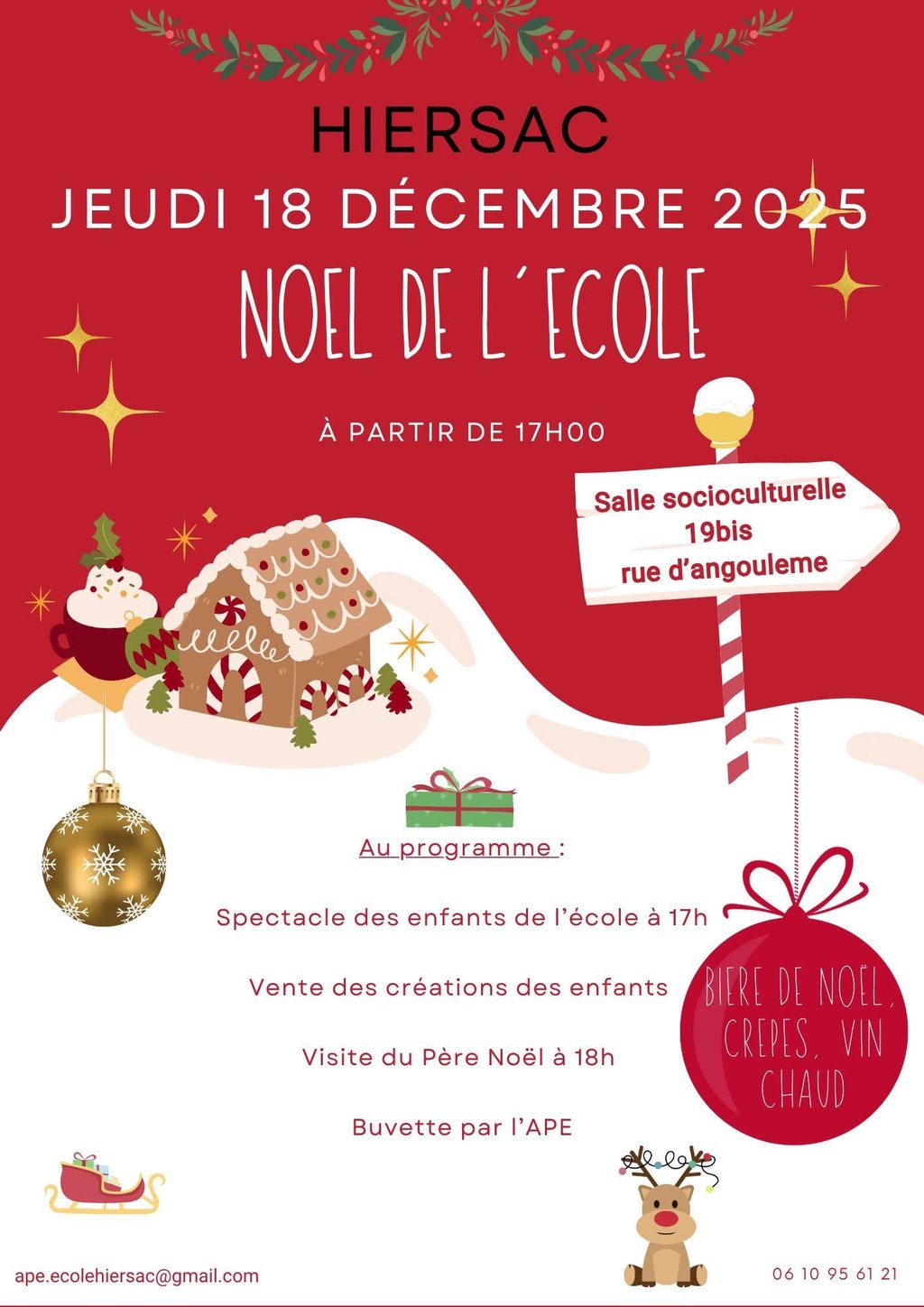Les élèves de l'école animeront la salle socioculturelle le jeudi 18 décembre à partir de 17h. Le père noël viendra rendre visite aux enfants à partir de 18h.
