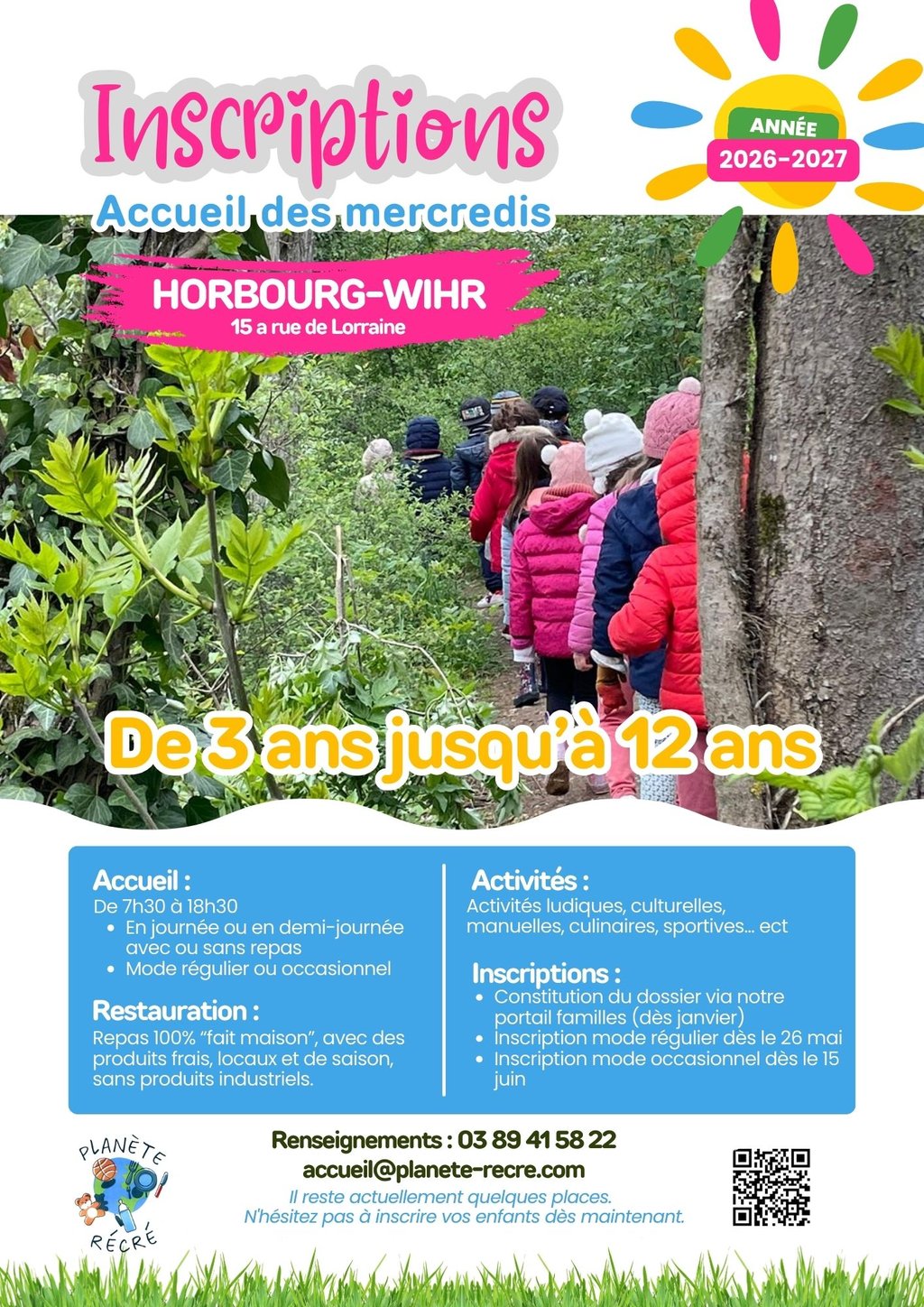 🌈 PLANÈTE RÉCRÉ : INSCRIPTIONS OUVERTES – ACCUEIL DES MERCREDIS 2026-2027 🌈