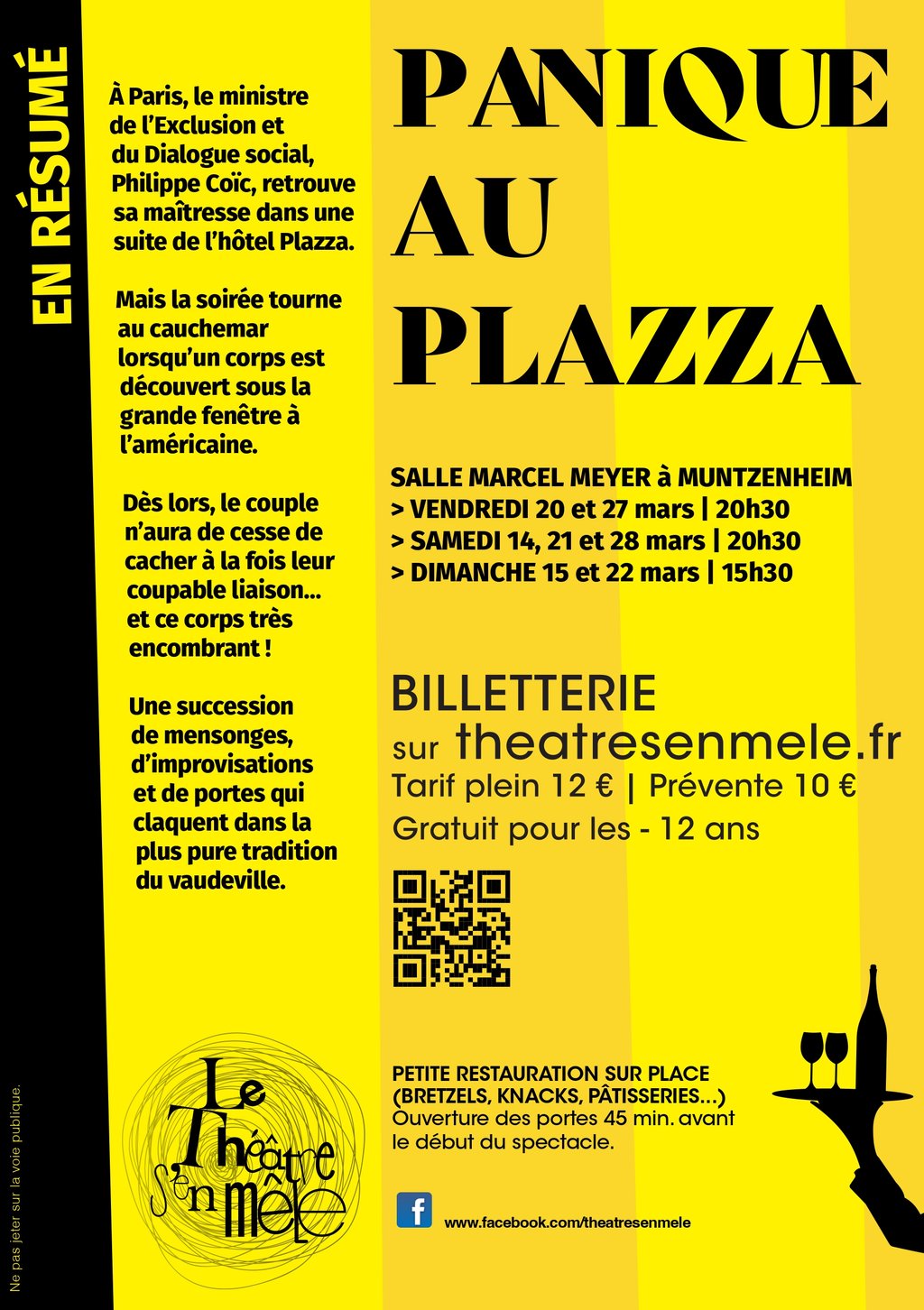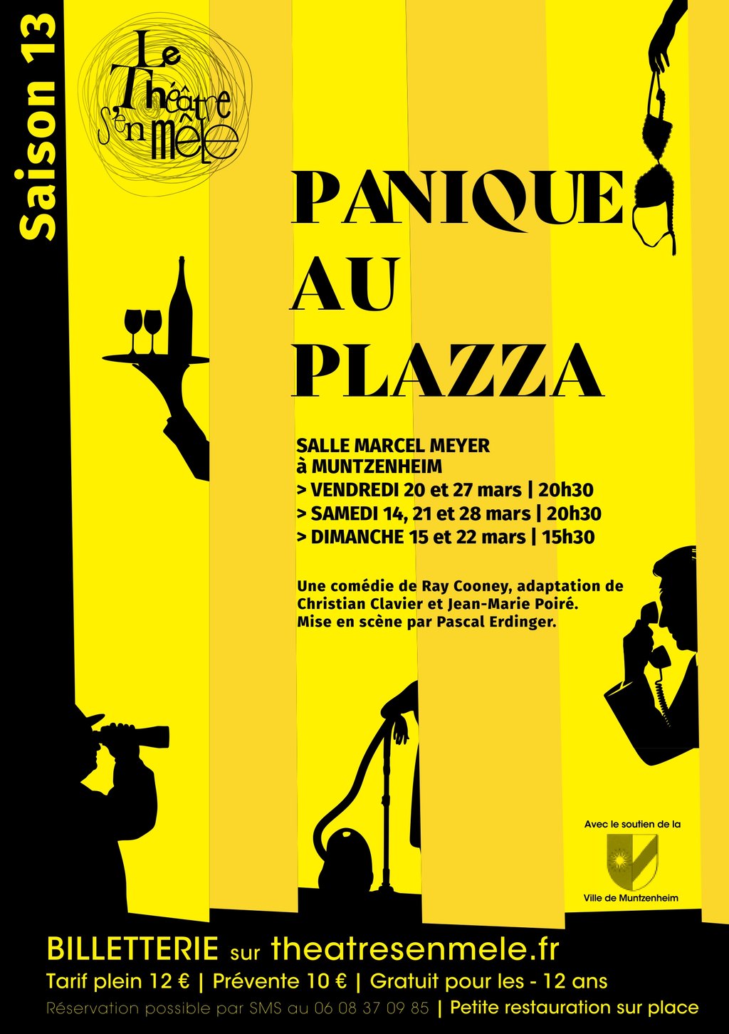 Le "Théâtre s'en mêle", association de théâtre amateur de Muntzenheim (68), pour sa 13ᵉ saison joue une comédie trépidante et délicieusement absurde signée Ray Cooney, adaptée par Christian Clavier et Jean-Marie Poiré « Panique au Plazza ».