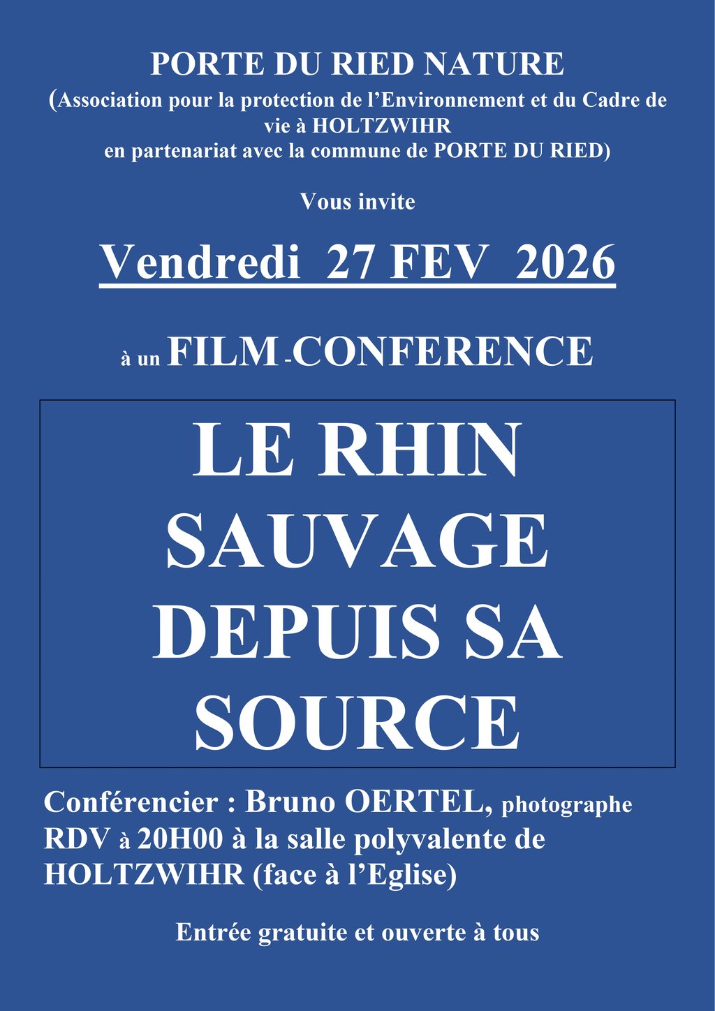 L'association PORTE DU RIED NATURE vous invite à unnFILM CONFÉRENCE intitulé :