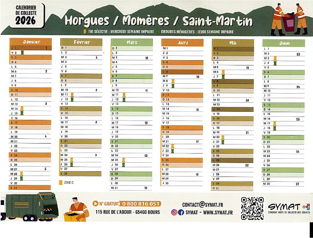 Votre calendrier de collecte des déchets pour le 1er semestre 2026