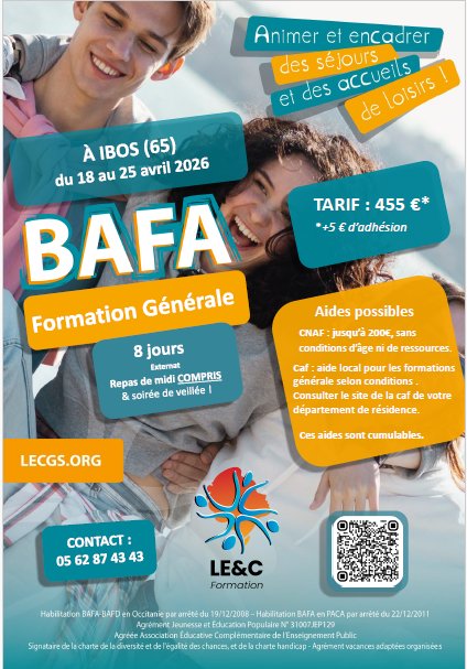 - Contact pour inscription : 05 62 87 43 43 - bafa-bafd@lecgs.org