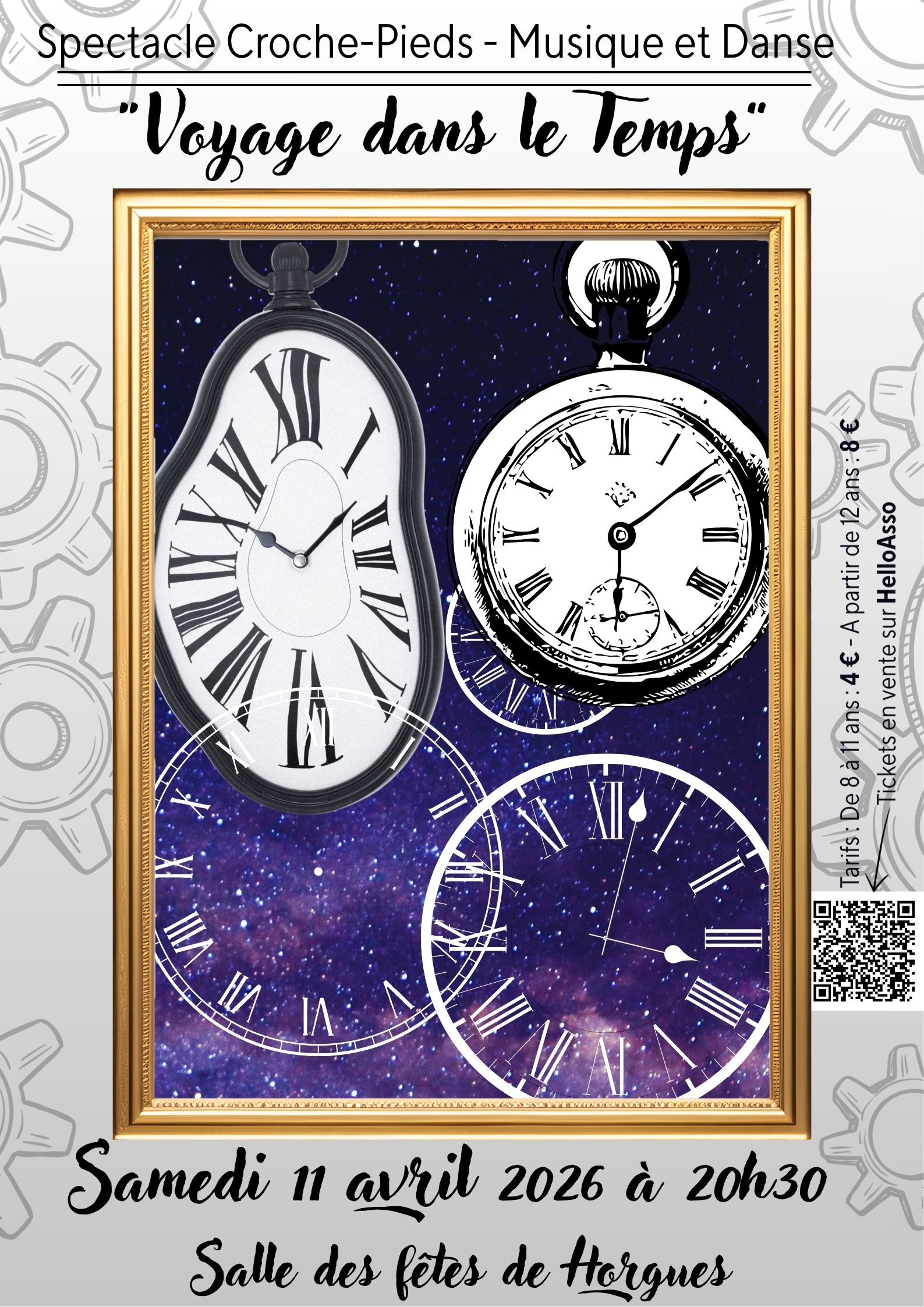 L'association Croche-pieds organise son spectacle le 11 Avril 2026 à 20h30.