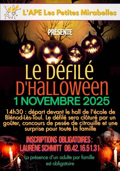 L’association Les Petites Mirabelles vous invite à son grand défilé d’Halloween le samedi 1er novembre, dans les rues du bas du village de Blénod-lès-Toul.