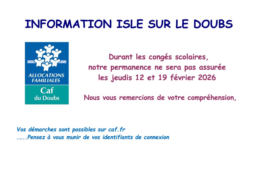 đą FERMETURE EXCEPTIONNELLE â PERMANENCE CAF L'ISLE-SUR-LE-DOUBS