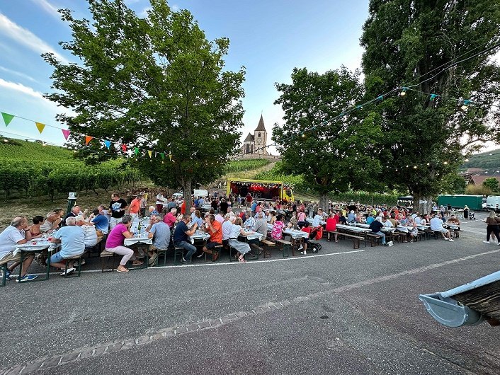 Soirée grillade à la belle étoile, au pied de l'église fortifiée d'Hunawihr, avec animation musicale, piste de danse et restauration !