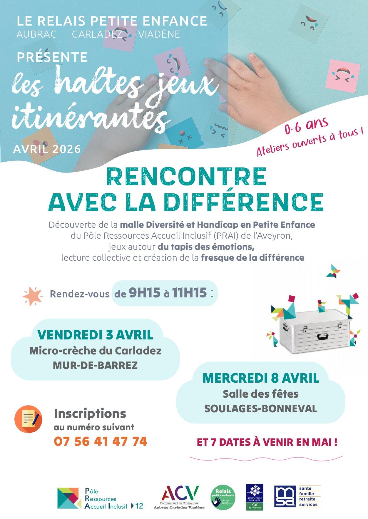 Le Relais Petite Enfance de la Communauté de Communes, en lien avec le Pôle Ressources Accueil Inclusif (PRAI) de l’Aveyron, propose des haltes jeux autour de la différence.