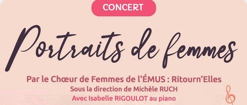 Le chœur de femmes Ritourn’Elles, assisté du chœur d'enfants de l'EMK, sous la direction de Michèle Ruch, a la joie de vous convier à son prochain concert, qui se tiendra le dimanche 29 mars 2026 à 16 h, à l’église de HURTIGHEIM.