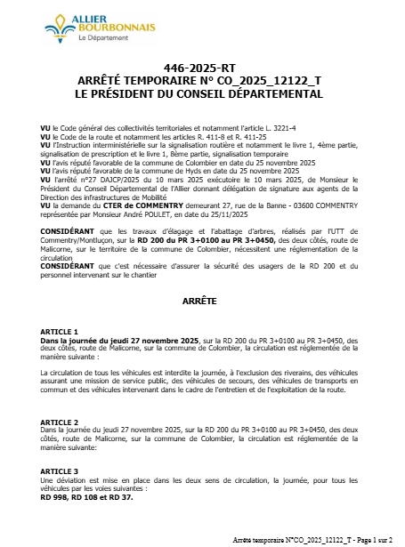ARRÊTÉ TEMPORAIRE N° CO_2025_12122_T