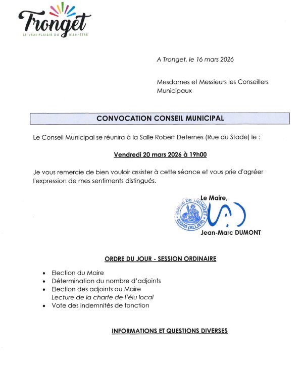 La séance d'installation du premier conseil municipal se tiendra le vendredi 20 mars 2026 à 19h00, salle Robert DETERNES.