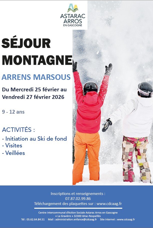 tu as plus de 9 ans et tu as envie de profiter des activités de montagne telles que le ski de fond, de passer 3 jours dans un centre de montagne avec tes copains et copines ? Alors inscris-toi vite au séjour montagne organisé par la communauté de communes Astarac Arros en Gascogne.
