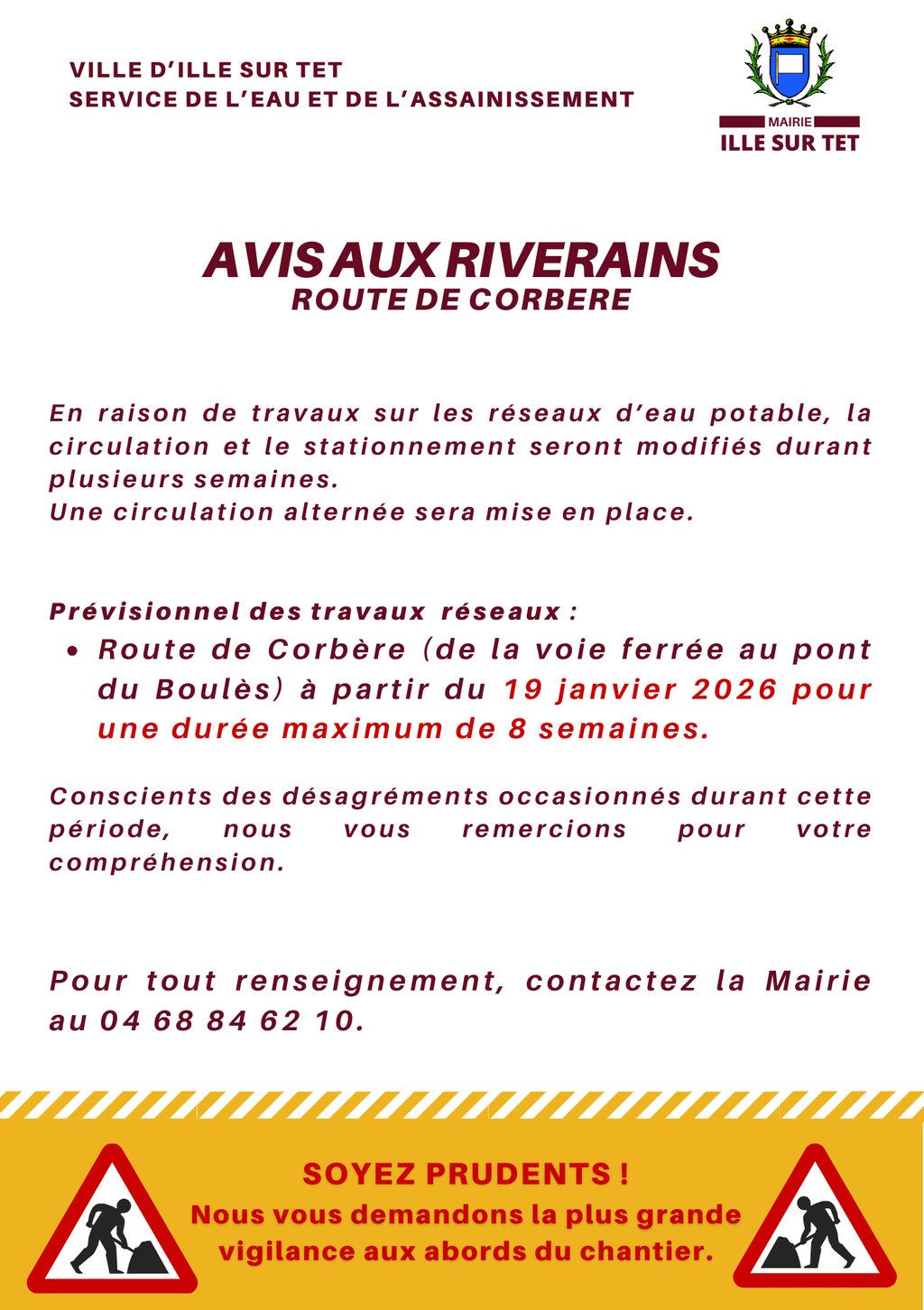 - Route de CorbÚre (de la voie ferrée au pont du BoulÚs) à partir du 19 janvier 2026 pour une durée maximum de 8 semaines.