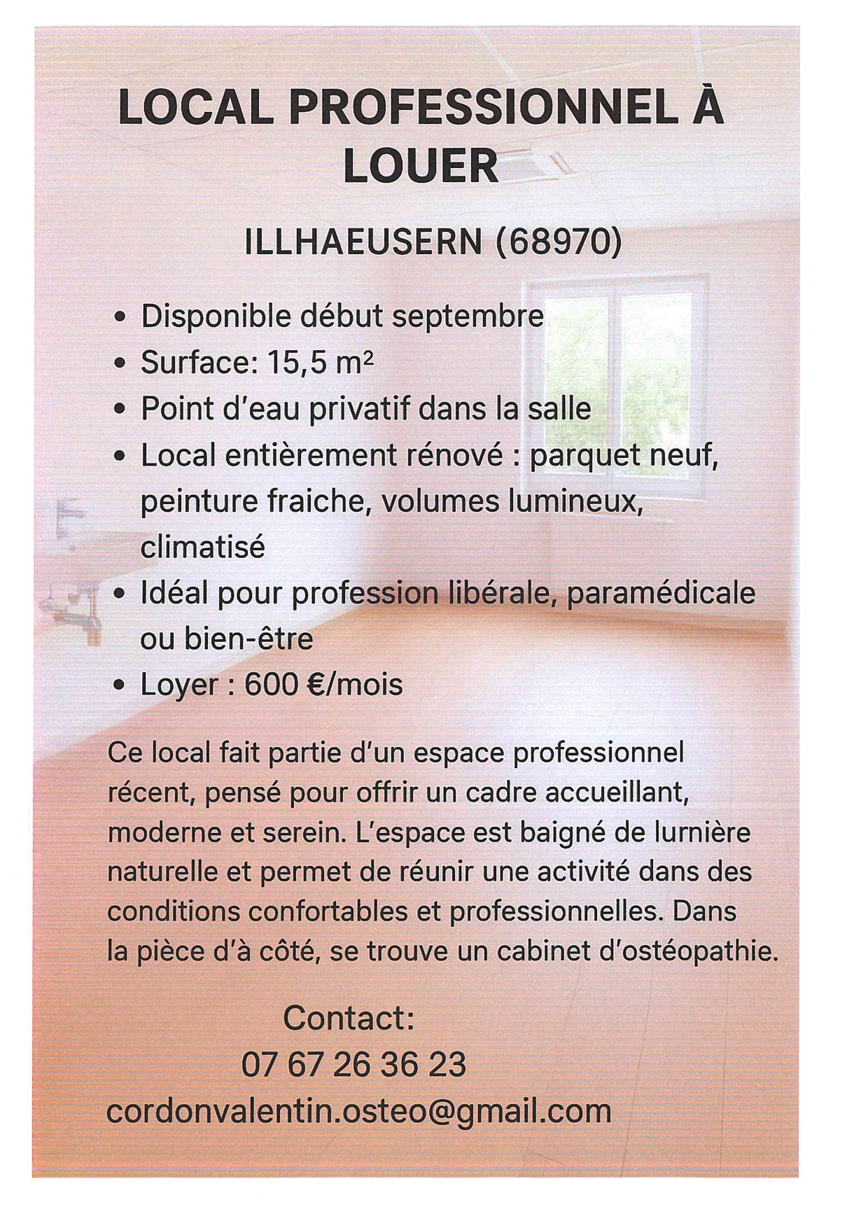 Local d'une surface de 15.5m2 disponible en septembre (cf document annexe).