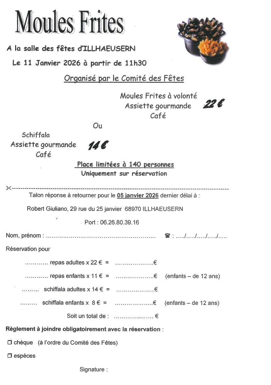 Le Comité des Fêtes organise son traditionnel repas "Moules Frites"