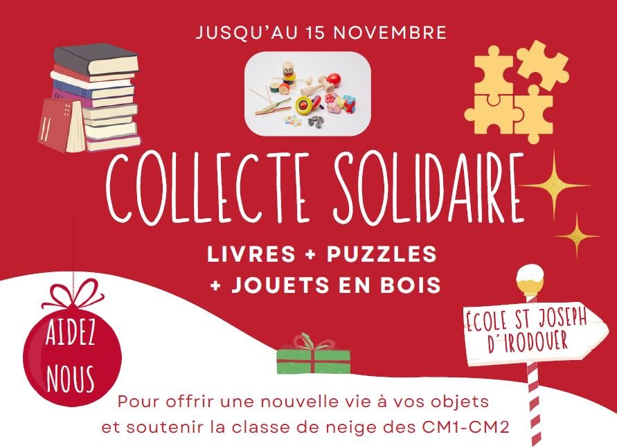 ⛷☃Dans le cadre du financement de la classe de neige pour les élèves de CM1/CM2, l'école St Joseph organise une action solidaire intitulée "Nouvelle vie pour livres, puzzles et jouets en bois"
