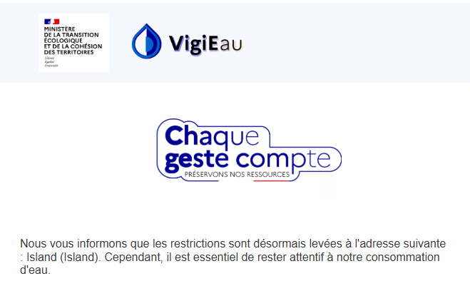 LEVÉE RESTRICTIONS USAGE DE L'EAU