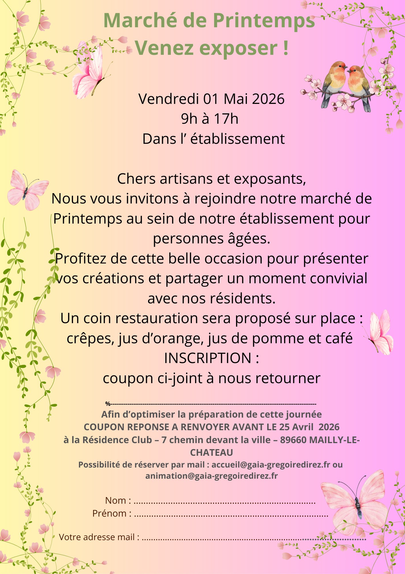 RECHERCHE EXPOSANT MARCHÉ PRINTEMPS M...