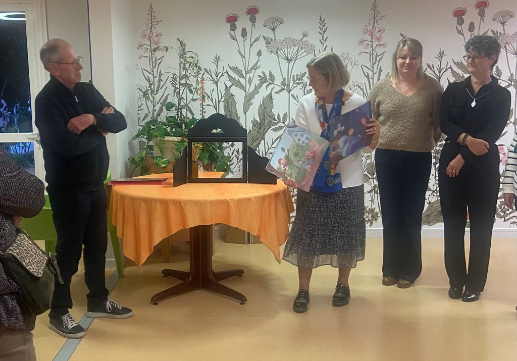 Ce mercredi 29 octobre, la Présidente, Mme Mariane BOURBOUSE et plusieurs bénévoles du Lion’s Club Isle Val de l’Aurence sont venus remettre à l’établissement en présence d’Hélène CUEILLE, Vice-Présidente du CCAS, de Madame Christine NÈGREMONT, bénévole auprès de la résidence dans le cadre du dispositif « Lire Ensemble » de l’UDAF87 et qui assurera l’animation autour du Kamishibaï, du personnel de l’établissement et des résidents, ce magnifique don.